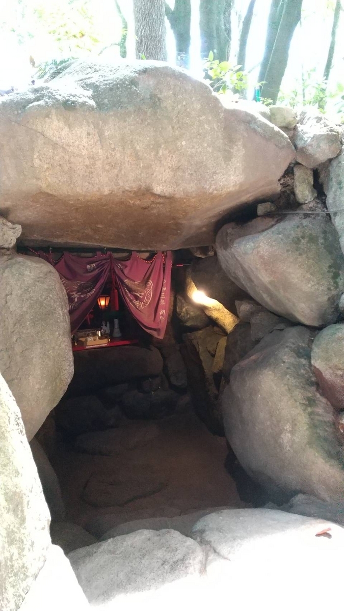 石を積み上げた洞窟の様な場所に神様が祀られています。